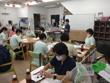 感染症が疑われる利用者の事例から、対応方法の訓練を実施。